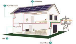 CA Solar Rooftop On-Grid PV System adalah Pembangkit Listrik Tenaga Surya tanpa battery yang mengkonversi langsung cahaya matahari menjadi energi listrik sehingga mengurangi pemakaian listrik dan biaya. Kelebihan energi listrik yang dihasilkan oleh On-Grid PV System akan disalurkan (diekspor/dikembalikan) ke jaringan PLN .